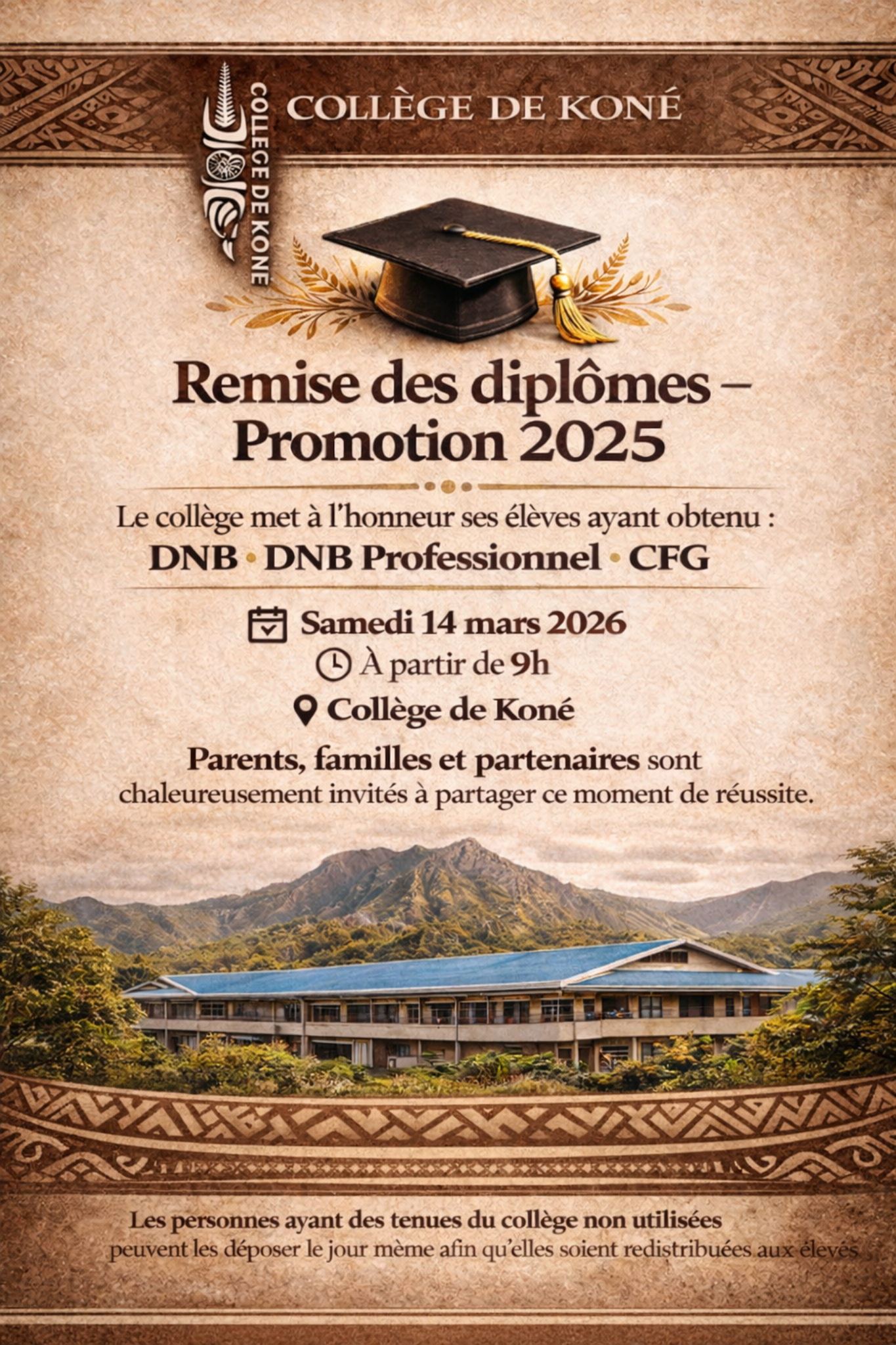Le Collège de Koné aura le plaisir de mettre à l’honneur ses élèves ayant obtenu le DNB, DNB Professionnel et CFG.